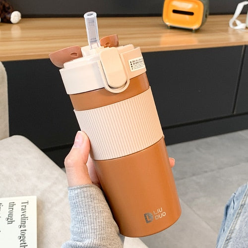 Portable Coffee Vacuum Thermos Bottle Straw Travel Sport Insulated Stainless Steel Thermal Mug Garrafa Termica School Office Cup