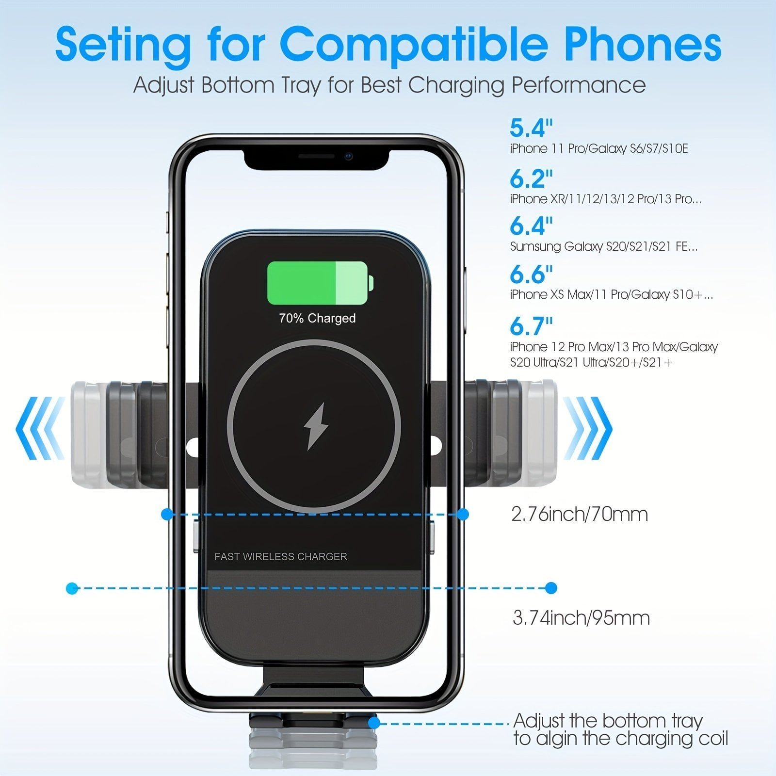 Wireless Car Charger. 15W Qi Fast Charging Auto Clamping Car Charger Phone Mount. Air Vent Phone Holder. For IPhone 14u002F13u002F12u002F11u002FX. Samsung Galaxy S22+u002FS21u002FS10u002FNote 20